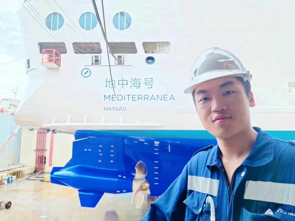 I am Zong Yucheng, a 3E from Adora Mediterranea. First of all, I would like to express my gratitude for the invitation extended by Adora Cruises, Columbia Group and Singhai, and I appreciate Chief Engineer Wang Lixiao’s recommendation which has granted me this valuable interview opportunity. It is a great honor to communicate and learn from everyone on this platform.
